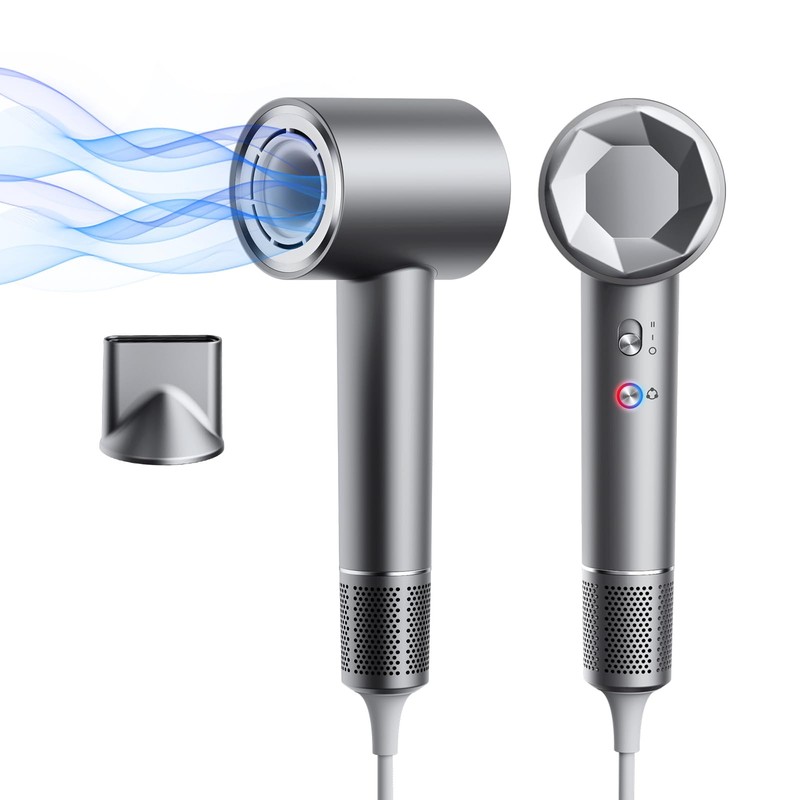 - High-Speed Hair Dryer: Our advanced 130,000 rpm high-speed motor technology achieves an overwhelming wind speed of 23 m/s and a large airflow of 3 m³/min! Compared to traditional hair dryers, drying time is reduced by up to 60%, delivering ultra-fast drying performance.