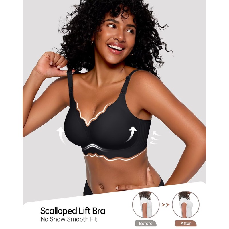 - 【Cute Scalloped Design】Wirefree bras with the upgraded V-neck and scalloped edge design that highlights the charming curves of the chest without being overly exposed. The scalloped cut gently wraps around your bust further showcases your natural curves, exuding a sense of allure and confidence.