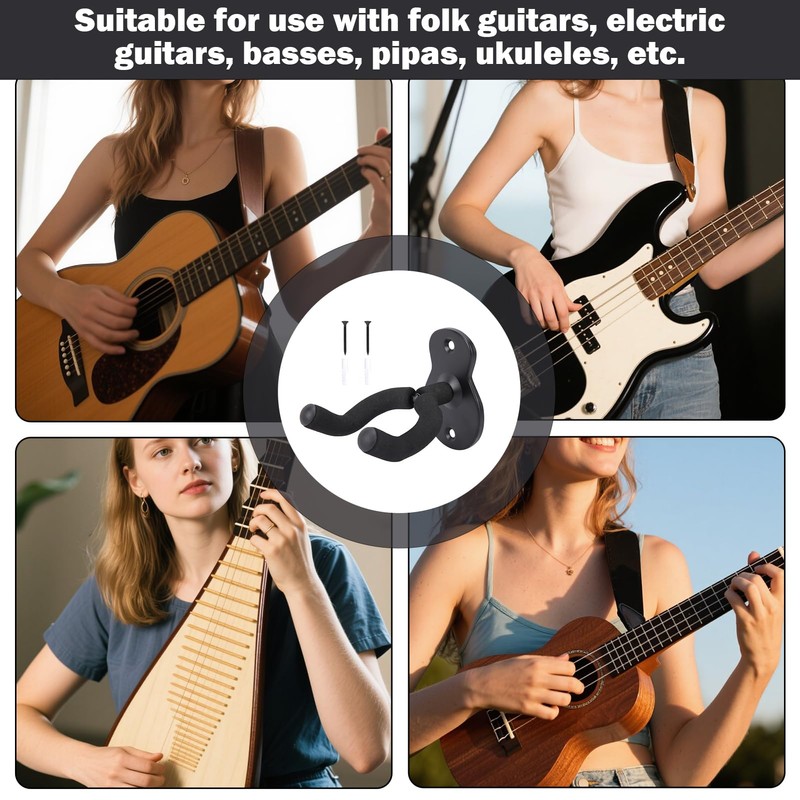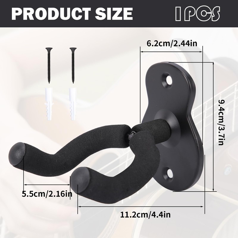 - Easy to install: this wall mount guitar mounting kit includes two screws and two drywall anchors. This guitar wall mount is easy to mount and allows you to hang your guitar safely on the wall. It not only looks good, but also saves space and prevents stacking of guitars.