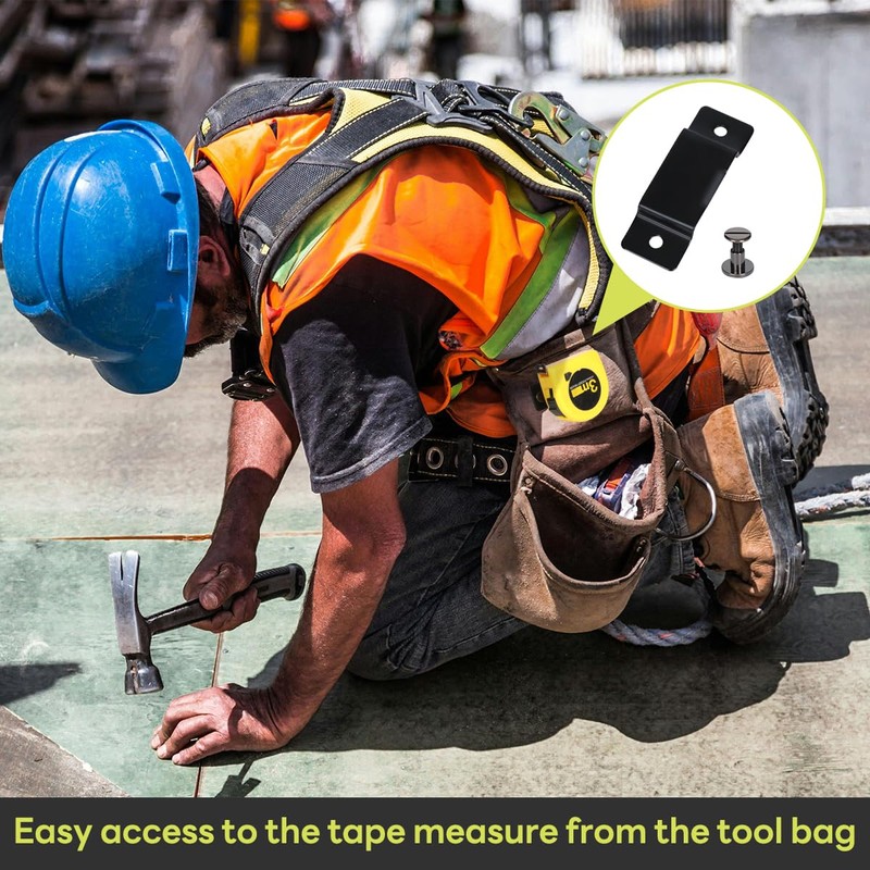 - 3. Material - The tape measure holder is crafted with high-quality materials, making it suitable for installation in various places using a drill, such as on a belt, tape holster, tool pouch, and more.