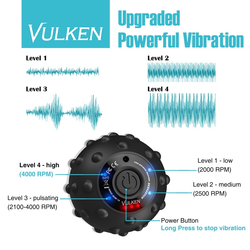 Vulken Acusphere 4 Speed High Intensity Vibrating Massage Ball for Muscle and Fitness, Performance Improvement and Trigger Point Release