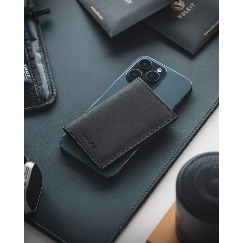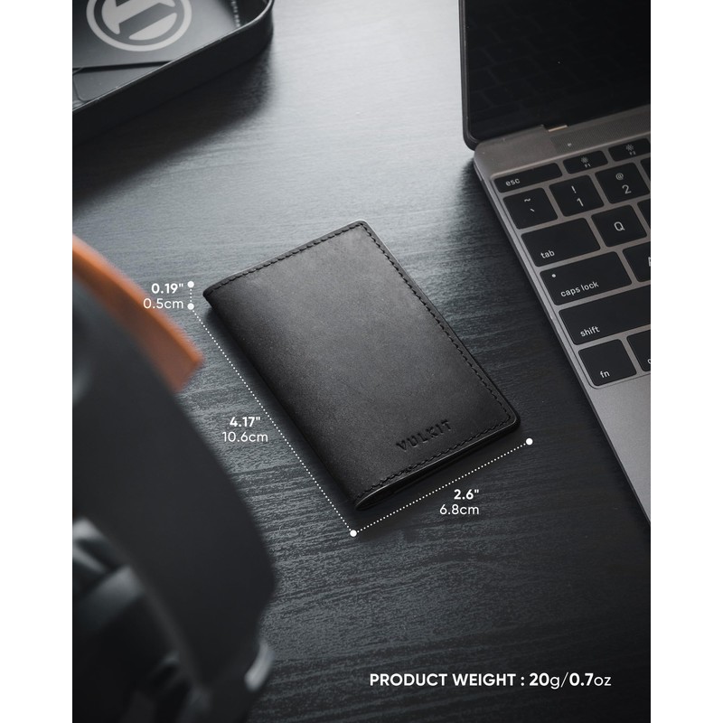 VULKIT Leather Business Card Holder 2 Sided Slim Business Name Card Organizer for Men or Women, Genuine Black, Compact