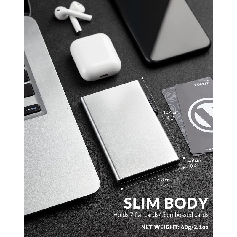 VULKIT Minimalist Credit Card Holder Pop Up Cards RFID Protection Slim Metal Wallet