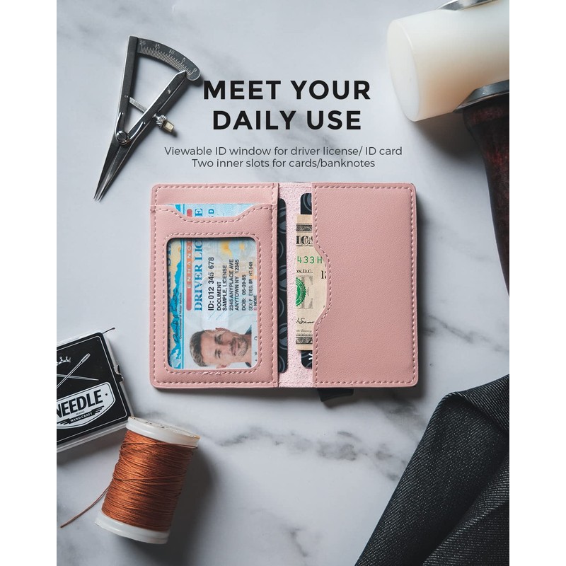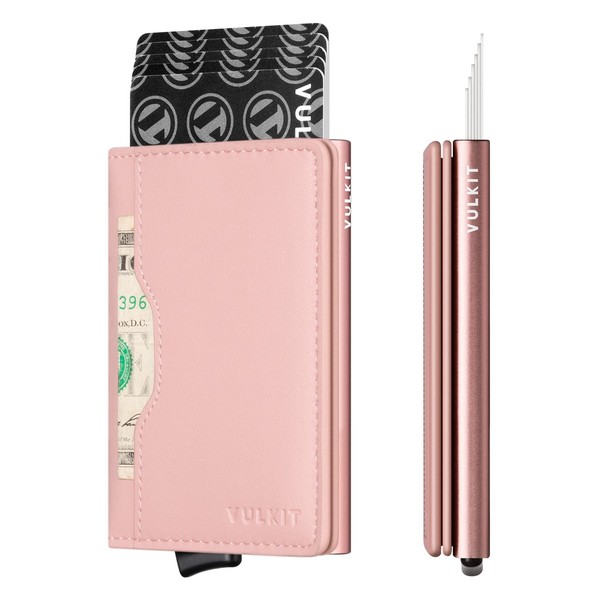 VULKIT Pop up Wallet Credit Card Holder with Leather Slots RFID Blocking Metlal Bank Card Case for Men or Women(Rose)