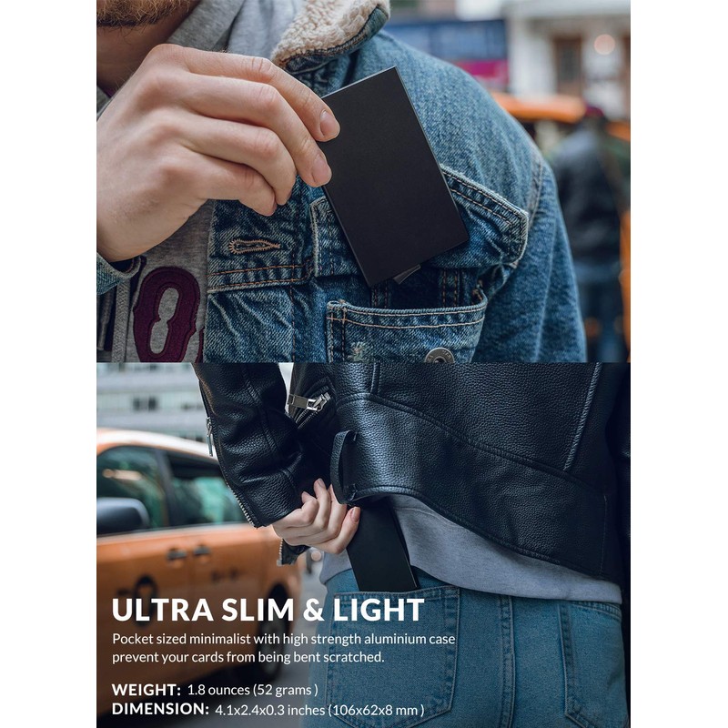 - ULTRA SLIM & LIGHT - Pocket sized minimalist aluminum wallet. Is lightweight enough that you won't even feel it in your pocket.