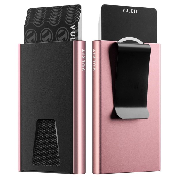 VULKIT Slim Card Wallet with Money Clip, Aluminum POP UP Credit Card Holder RFID Blocking, Pink