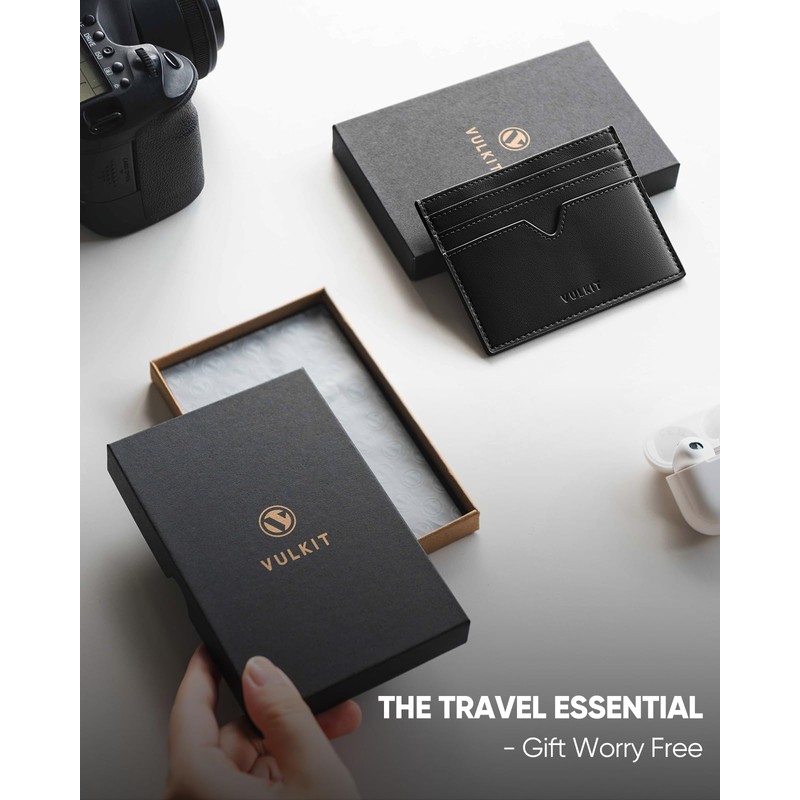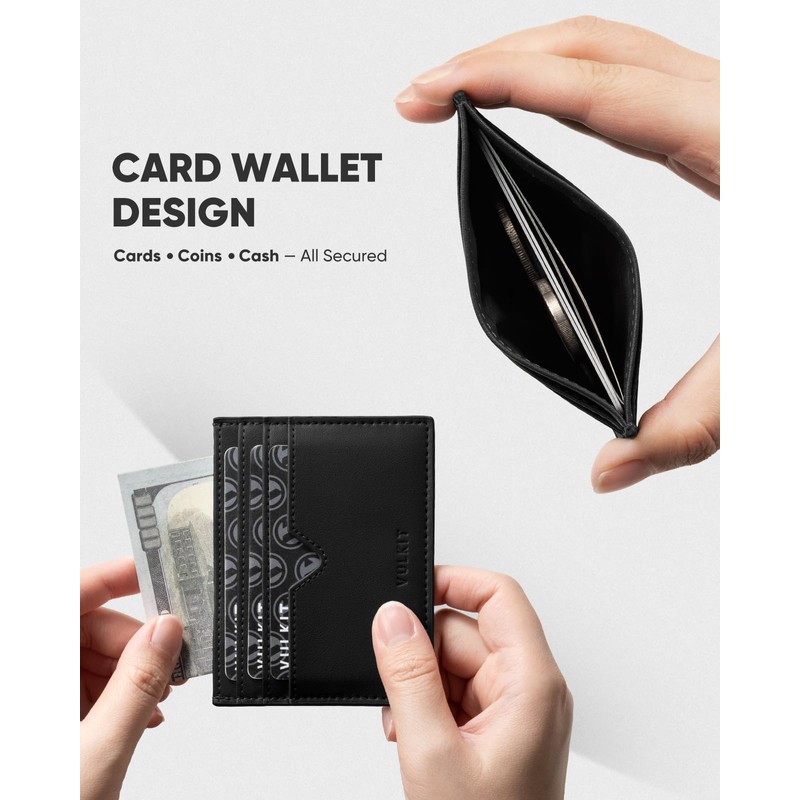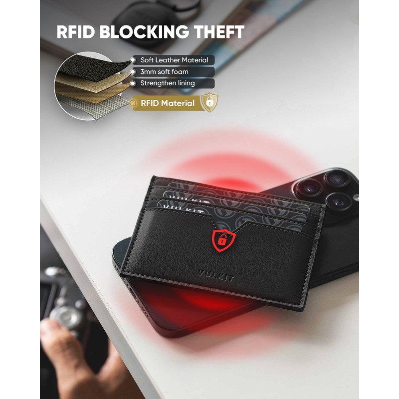 VULKIT Ultra Thin Wallet Credit Card Holder for Men & Women - Small Slim Minimalist Design Cardholder Holds 6+ Cards, Cash Notes & Coins | RFID Blocking | UK Carry Travel Essential (Black, Slim)