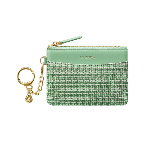 Vulkitty Small Purses for Women with Keychain, Mini Coin Pocket, Slim Ladies Wallet, RFID Shielding Credit Card Purse, Green, Minimalist
