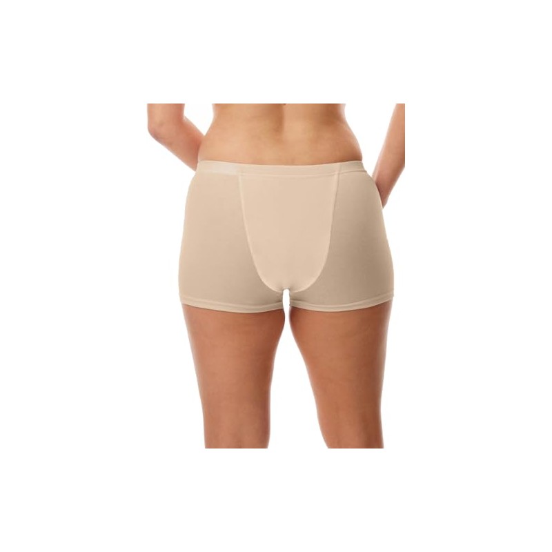 Vulvar Varicosity and Prolapse Support Boy-Leg Brief with Groin Compression Bands and Hot/Cold Therapy Gel Pad - Beige - Small
