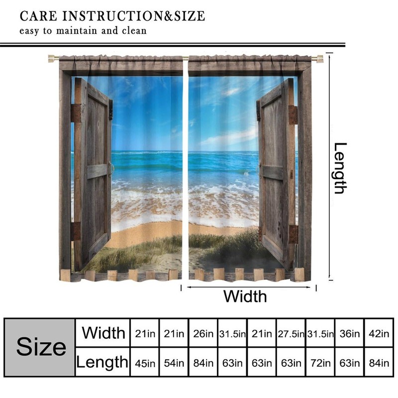 VUMIVI Beach Seaside Curtains Vintage Surviving Barn Door Sea Waves Tropical Landscape Window Treatments for Bedroom Kitchen Living Dining Room 42" W X 44.5" L
