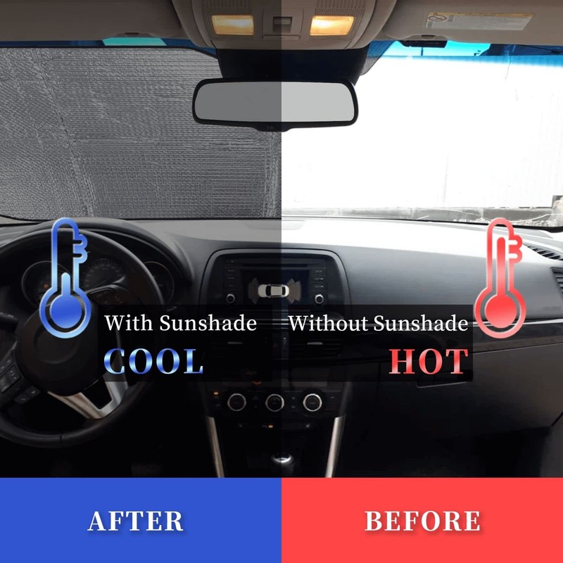 - Insulation and cooling - VunKo sun shade car window windshield creates the most comfortable and cool interior environment for you. Keeping the temperature at 25-35°C saves fuel consumption of the in-car air conditioner and helps keep the car cool in hot and sunny weather