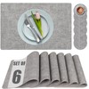 VUNKQU Placemats with Coasters Set of 6, Faux Leather Heat Resistant Square Placemat, Waterproof & Wipe Clean & Anti Slip Dining Table Place Mats for Kitchen/Dining/Holiday - 11.8" x 17" - Light Grey
