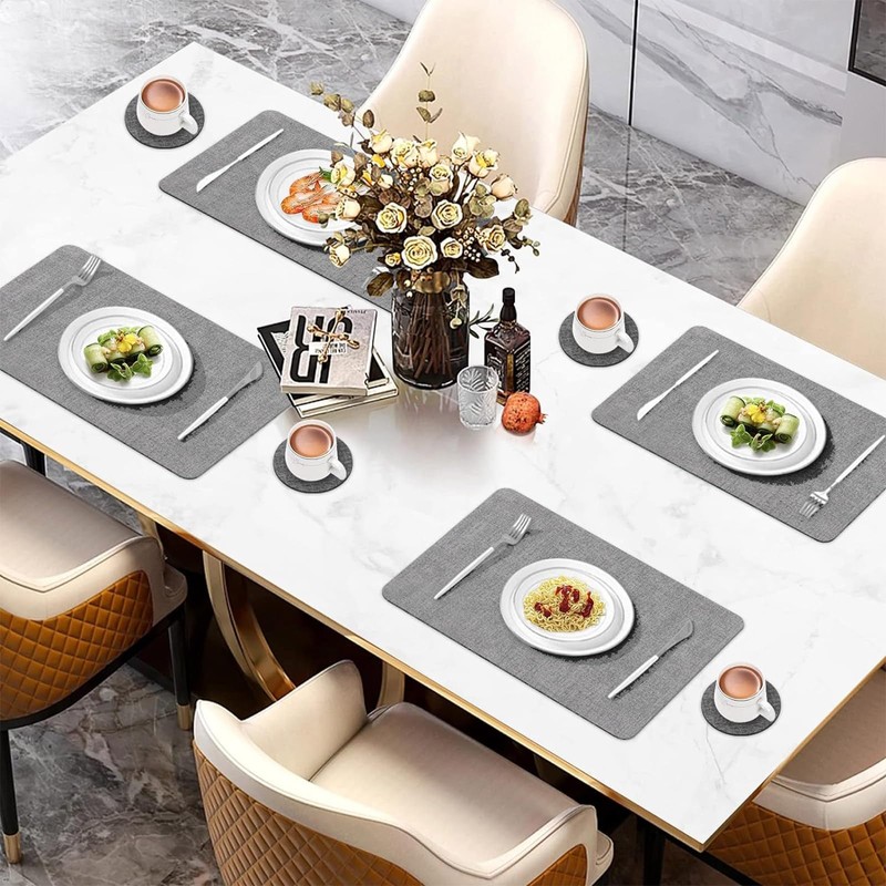 • WATERPROOF & STAIN-PROOF - Unlike fabric or woven mats, these dining place mats are crafted of faux leather with waterproof, and oil-proof, and polluting. Whether feeding your baby or entertaining guests, this placemat can also keep your dining table clean while ensuring added atmosphere, especially when the child eats with a placemat, which can save a lot of time in cleaning the table.
