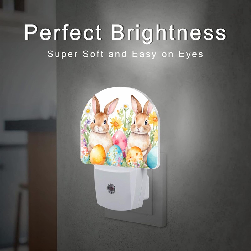 VURQLHE Easter Bunnies and Eggs Night Light for Kids,Cute Easter Rabbit and Flowers Plug in Night Light with Dusk to Dawn Sensor, 0.5w Energy Saving Nightlight for Hallway Stairway Kitchen Bedroom