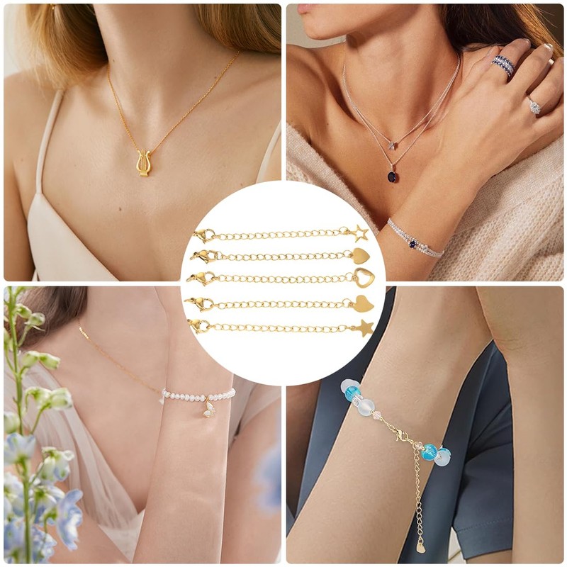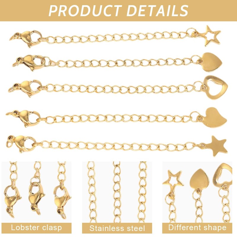 - Durable gold plated chain extenders in 9 unique styles, ideal for extending necklaces, bracelets and anklets. Lead-free, nickel-free and hypoallergenic.