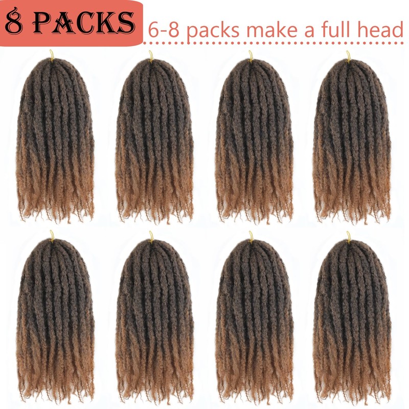 - Hair Details: 8 Packs 14 Inch Marley Hair, 50g/Pcs, 8packs/Lot, Total 400g/ Lot; Usually 6-8 Can Full a Head. Easy To Twist And Install. Came With a Free Crochet Hook And 6 Rings.