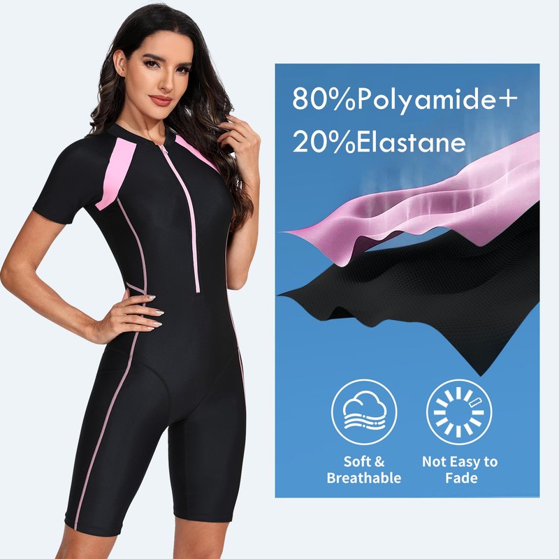 - 【Zipper Closure】Women's surf swimsuit has a one-piece design with a front zipper, easy to put on and take off.