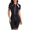 VUTRU Womens One Piece Swimsuit Short Sleeve Rash Guard Padded Bathing Suit UV Protection Front Zip Surf Wetsuit (Pink,S)