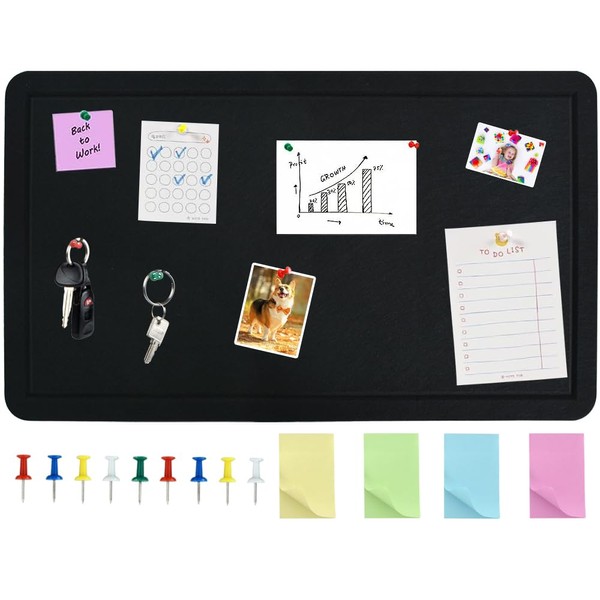 Vuzvuv Black 28"x16" Large Cork Board with 50 Push Pins & Sticky Notes, Self-Adhesive Bulletin Board No Damage for Wall, Felt Pin Board for Paste Notes, Photos, Schedules Offices Home