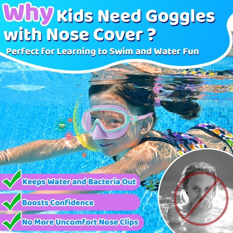 - 【UV400 protection & long-term anti-fog】Double safety: Exterior: highly reflective mirror coating blocks 99% of UVA/UVB rays (EN 170 certified). Interior: Nano anti-fog coating keeps clear 2x longer. Ideal for indoor pool, outdoor pool and beach activities.