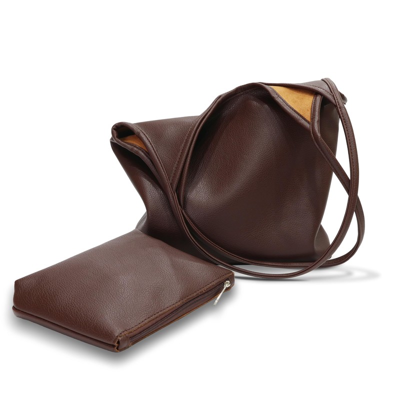 VVingSong Soft Vegan Tote Bag for Women, Slouchy Vegan Leather Hobo bag, Purse Wallet, Shoulder Bag Handbag for life, Minimalist Work Tote Bag, Birthday Gift for Girl (Coffee)