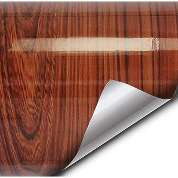 VVIVID High Gloss Red Cedar Striped Wood Grain Faux Finish Textured Vinyl Wrap Roll Sheet Film for Home Office Furniture DIY No Mess Easy to Install Air-Release Adhesive (3ft x 4ft)