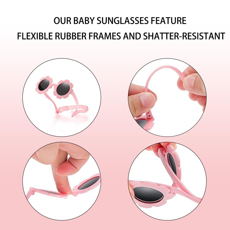 • ADJUSTABLE STRAPS The adjustable moisture wicking neoprene strap adjusts effortlessly for a secure fit at the temples. So the sunglasses stay firmly in place while your child can play and walk around.