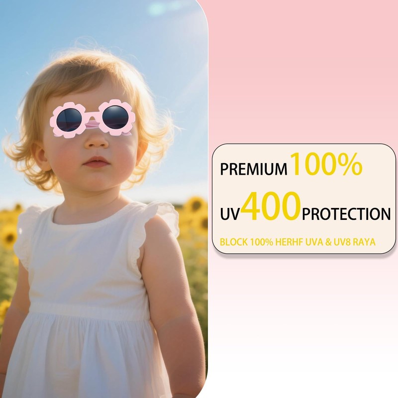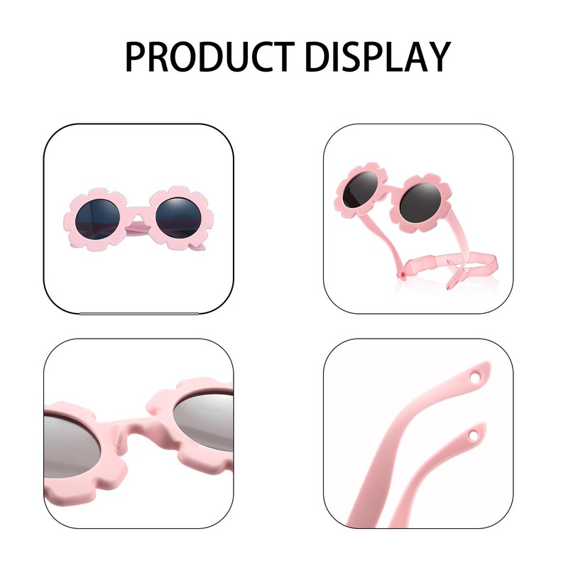 VVQWCY 2 Pack Baby Sunglasses with Strap Sunglasses for Toddlers UV 400 Protection Cute Polarized, White + Pink