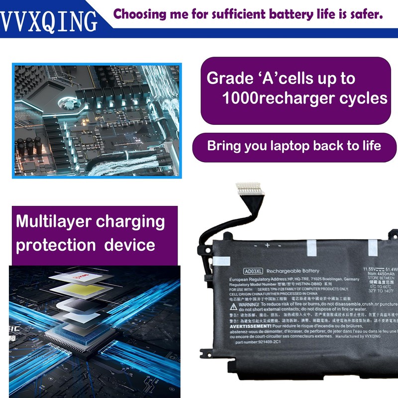 VVXQING AD03XL TPN-I128 Laptop Battery for HP Envy 13-ad 13-ad100 13-ad0xx 13-ad1xx 13-ad000nf 13-ad002ng 13-ad002nf 13-ad003ng 13-ad008nw 13-ad012na 13-ad013na 13-ad014na 13-ad015na HSTNN-DB8D