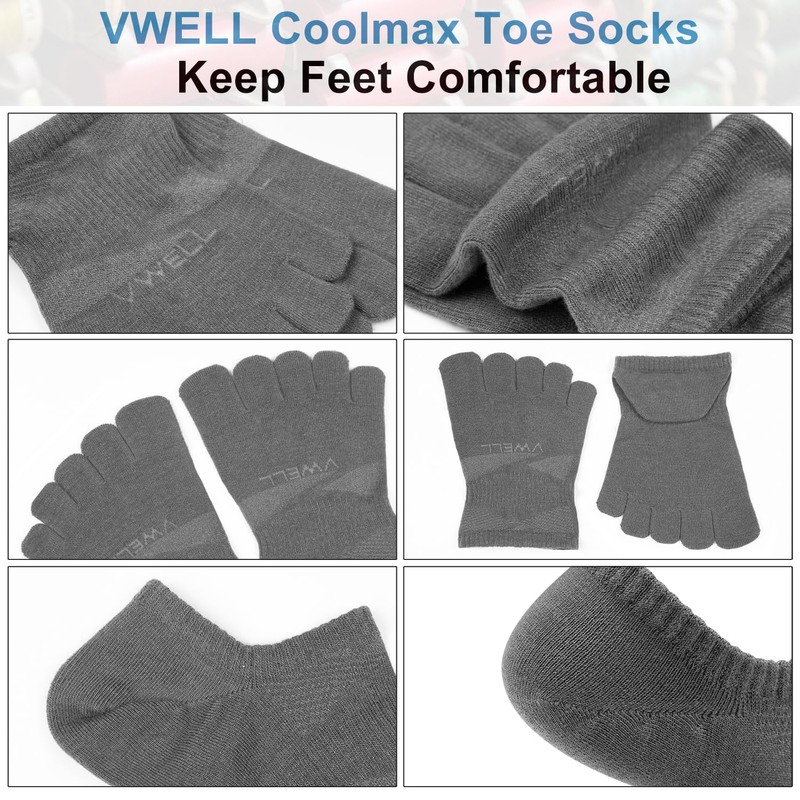 - COOLMAX Material: COOLMAX material are designed to help you beat the heat. Made of 32% coolmax, 63% nylon and 5% lycra, VWELL Coolmax toe socks provide quick moisture wicking performance, keeping your feet stay cool, dry and comfortable whole day