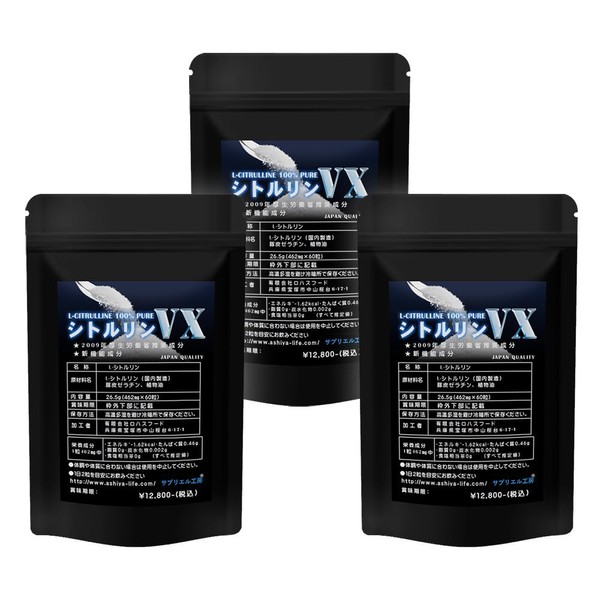 神戸ロハスフード のシトルリンVX アミノ酸 3袋セット 180粒入り 約90日分 日本製 サプリエル工房