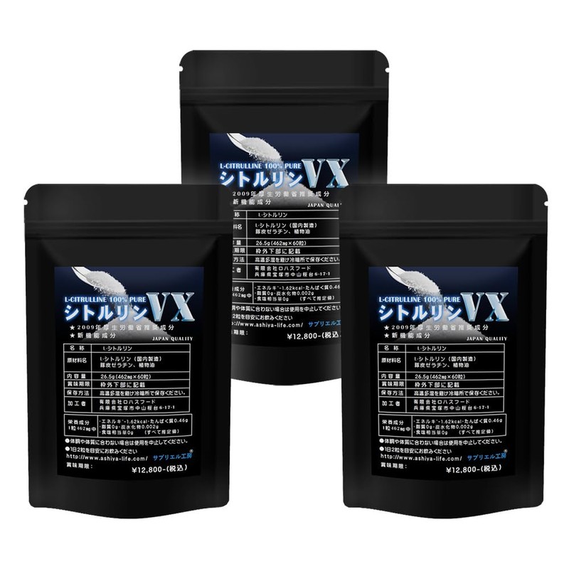 • 60粒入り3袋セット90日分 1日分2粒あたりL-シトルリン800mg、健康の維持に役立つ栄養素です。