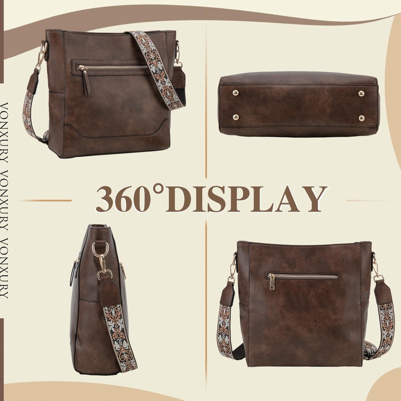 VX VONXURY Crossbody Bag for Women, Trendy Vegan Leather Shoulder Bag, Designer Bucket Bag with 2PCS Adjustable Straps