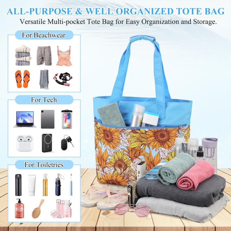 VX VONXURY Women's Beach Bag, Large Beach Bag, XXL Family with Zip, Swimming Bag, Waterproof Tote Bag, Shopper Summer Pool Handbags, Sandproof for Beach, Travel, Pool, Gym, Yellow (sunflower)