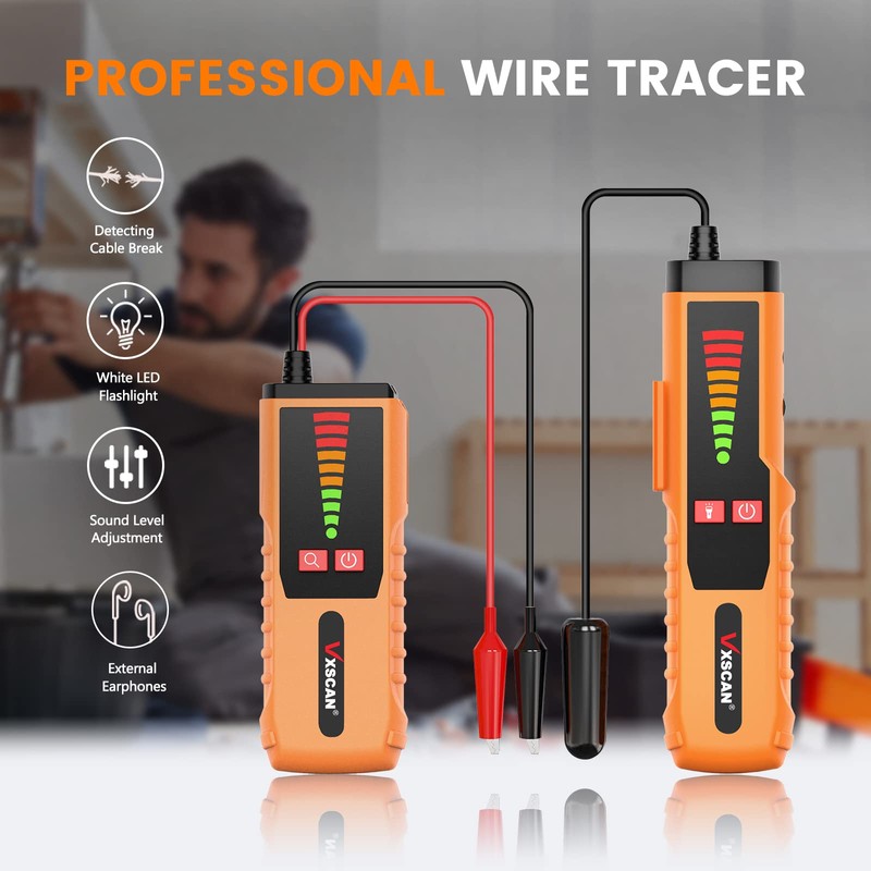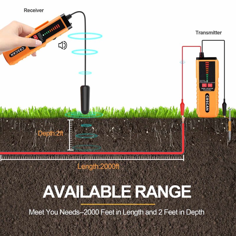 - đăUnderground Cable Locator FunctionăVXSCAN F04 wire tracer can quickly locate breakage point, short-circuit point and direction of underground cables and no need to break insulators on the surface of cables. It is especially convenient to locate the direction of the breakpoint of the network communication wire, digital signal wire, underground cable, wall-through cable, dark ditch pipeline cable, underground irrigation cable, and cable in the construction area.