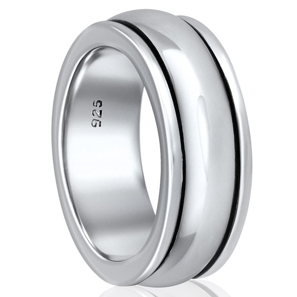 VY JEWELRY Plain Spinner - Solid 925 Sterling Silver Spinner Ring for Men - Made in Thailand - Size 10