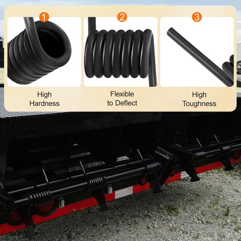 - HEAVY DUTY STEEL: Heavy-duty trailer ramp springs are made of high-quality heavy-duty steel material and are forged at multiple high temperatures. The springs possess a strong and durable elasticity, ensuring long-lasting durability.