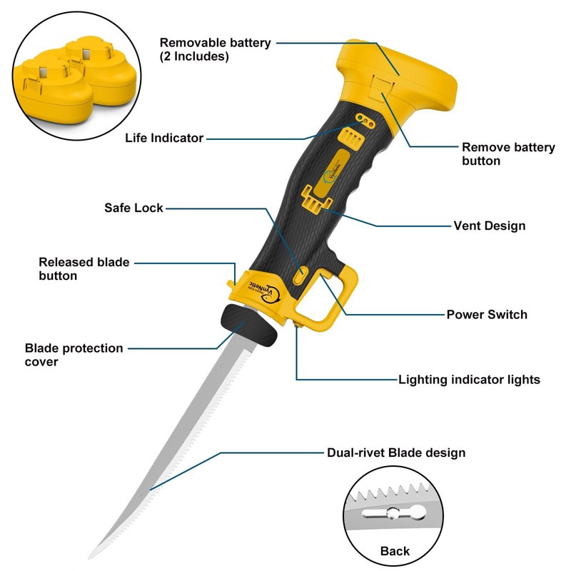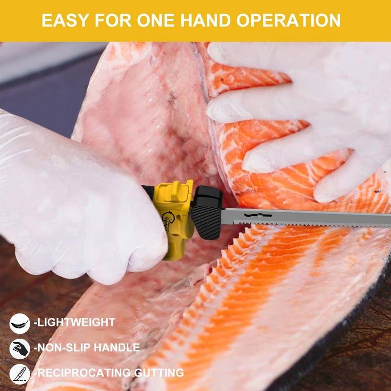 - 【Upgraded High-Performance Motor】 VynNetic cordless electric fillet knife features an advanced high-efficiency motor that ensures stable performance and long-lasting durability. This powerful motor delivers robust cutting while minimizing power consumption and noise. Ideal for both freshwater and saltwater fish, it provides fast and smooth cuts. Whether for home kitchens or professional use, it enhances cutting efficiency, saves time, and offers a seamless, effortless experience