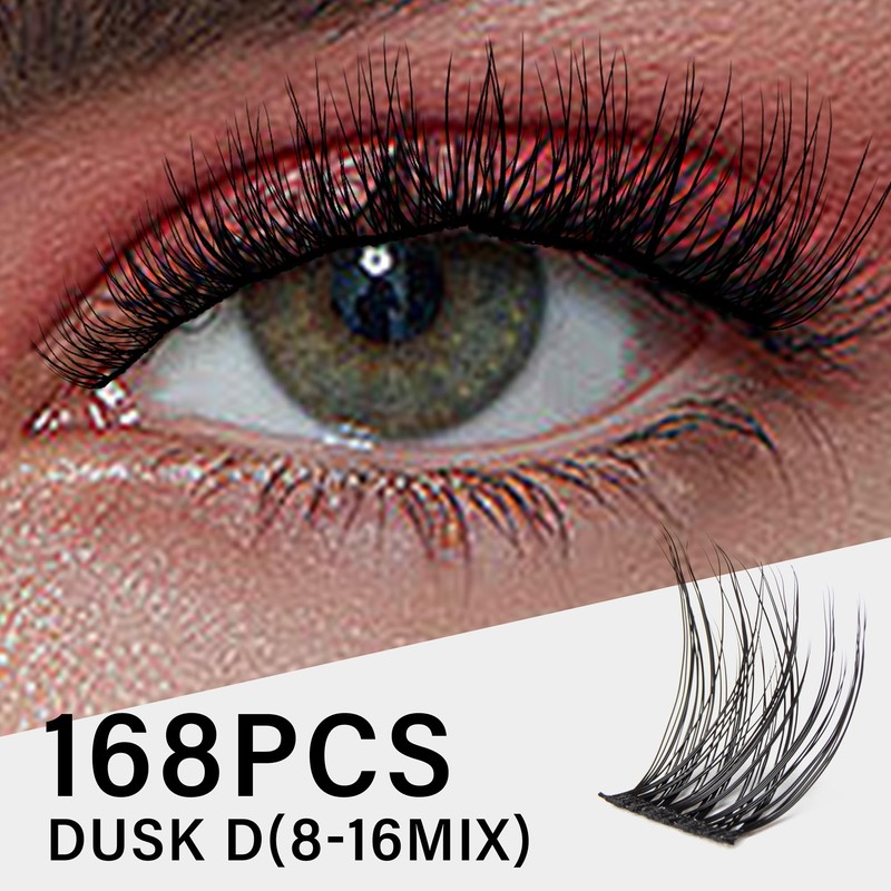 VYRILA Lash Clusters 8-16mm, False Eyelashes 168pcs, Cluster Eyelash Extensions Matte Black Soft, Diy Lash Extensions D Curl Natural Lash Clusters Faux Mink Lashes Wispy(Dusk,168pcs,0.07,D,8-16MIX)