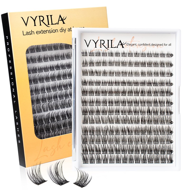 - 𝟭𝟲𝟴𝗽𝗰𝘀 𝗘𝘆𝗲𝗹𝗮𝘀𝗵 𝗖𝗹𝘂𝘀𝘁𝗲𝗿𝘀 𝗶𝗻 𝗢𝗻𝗲 𝗧𝗿𝗮𝘆: Save both money and time with VYRILA's lash clusters, featuring 168pcs in a single tray. Our eyelash extensions provide a mix of lengths, allowing you to create your preferred shape. Achieve a stunning look with just 4-6 cluster lashes per eye—making one box of individual lash clusters sufficient for your needs