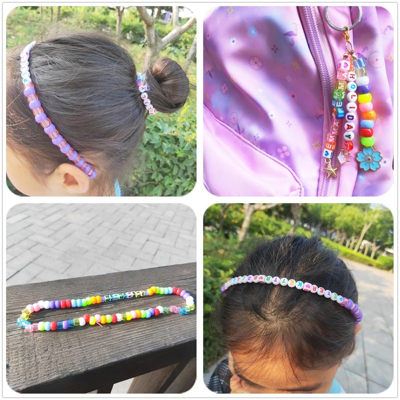 - Dimensions: plastic beads - 6 * 9mm, square letter beads - 6 * 6mm, oblate letter beads - 4 * 7mm, elastic thread diameter is 0.8mm and length is 10 meters.
