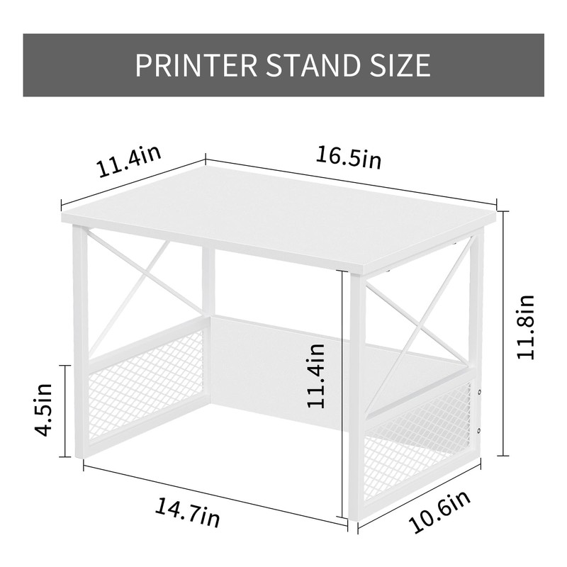 - X-shape&Iron Mesh Design:The X-shaped support design between iron pipes significantly improves the printer shelf's stability. The bottom is equipped with diamond-shaped iron mesh. These designs not only prevent papers, files and documents from falling but also adds a touch of modern elegance to the overall look.