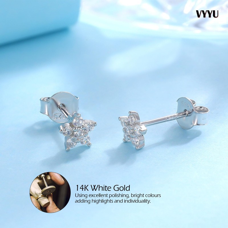 VYYU Sterling Silver Earrings for Women Girls - 3 Pairs Studs for Multiple Piercings, Beautiful Flower Ear Jewellery with Shiny Cubic Zirconia | Hypoallergenic Earings Set Christmas Birthday Gifts
