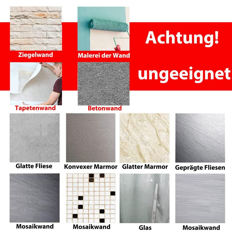 Aufgrund unterschiedlicher Monitoreinstellungen kann es zu Farbunterschieden beim Toilettenpapierhalter ohne Bohren kommen. Die Farbe entnehmen Sie bitte dem tatsächlichen Produkt.