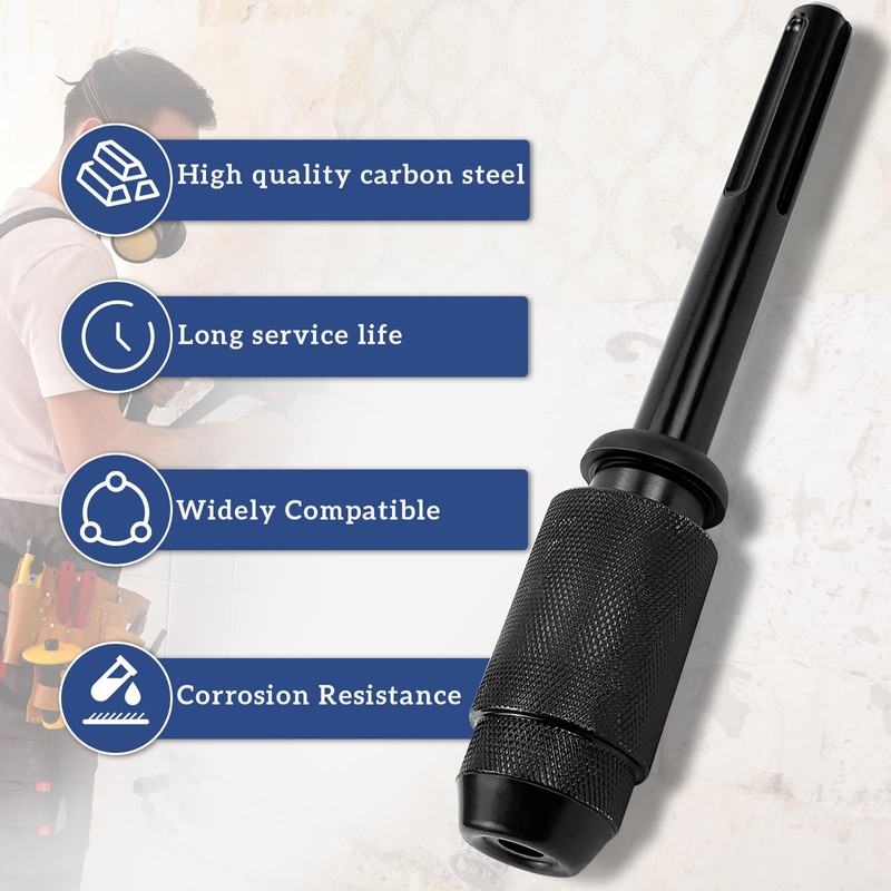 - Quick change: the drill chuck for sds can realize the quick change of drills, just press the head down to insert the new drill into the drill chuck and tap lightly to fix it, and then reverse the process to easily take out the old drill, which greatly improves work efficiency, and it can be used sds drill chuck adapter to make holes of high strength and durability