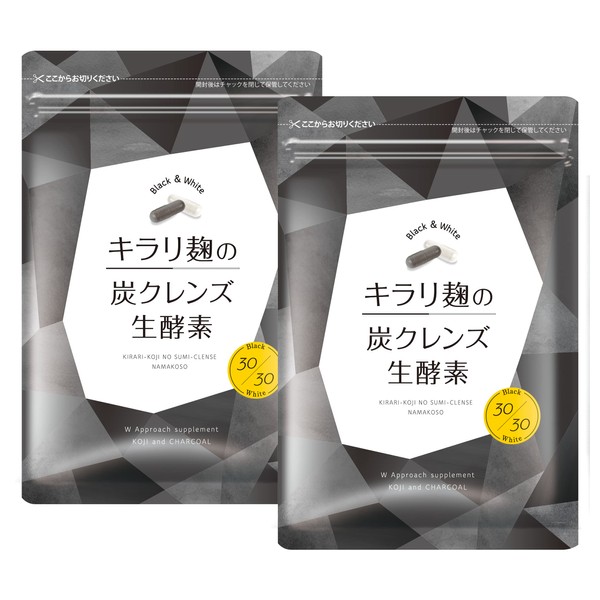 キラリ麹の炭クレンズ生酵素 Wカプセル 1袋2種類×30粒入り [ 生 酵素 麹 炭 クレンズ ナノ型 乳酸菌 オリゴ糖 納豆菌 チアシード スッキリ ] ハハハラボ 2個セット