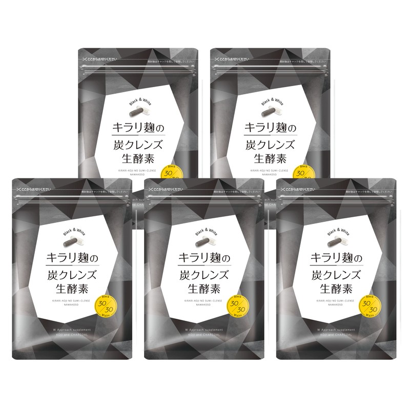 キラリ麹の炭クレンズ生酵素 Wカプセル 1袋2種類×30粒入り [ 生 酵素 麹 炭 クレンズ ナノ型 乳酸菌 オリゴ糖 納豆菌 チアシード スッキリ ] ハハハラボ 5個セット