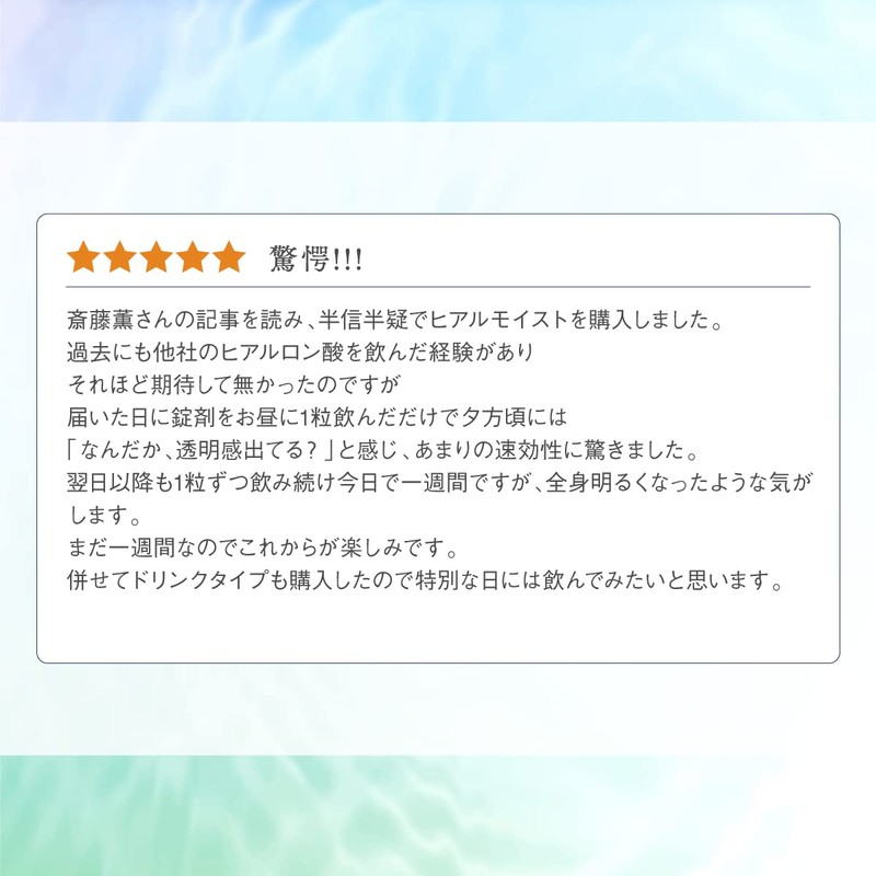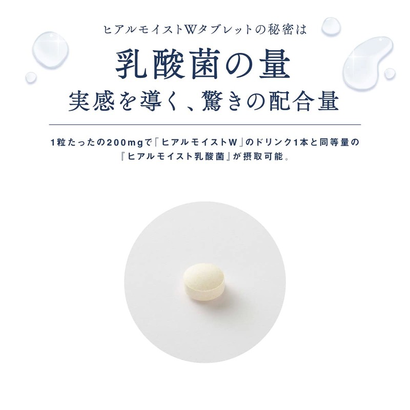 1粒のタブレットに、「ヒアルモイストW」1本と同等量の「ヒアルモイスト乳酸菌」を配合。