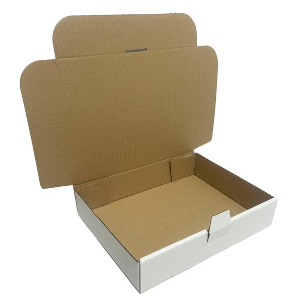 - White box mailers sized 310mm x 234mm x 63mm are ideal for shipping delicate items, while also presenting a professional appearance. These postage boxes are shipped flat-packed and are easy to assemble.