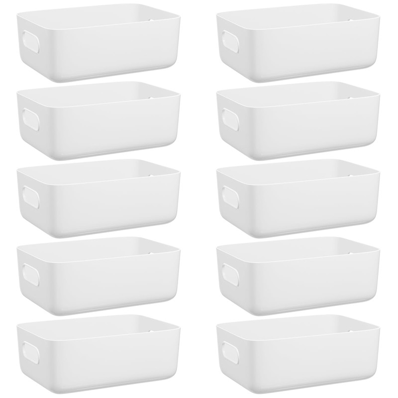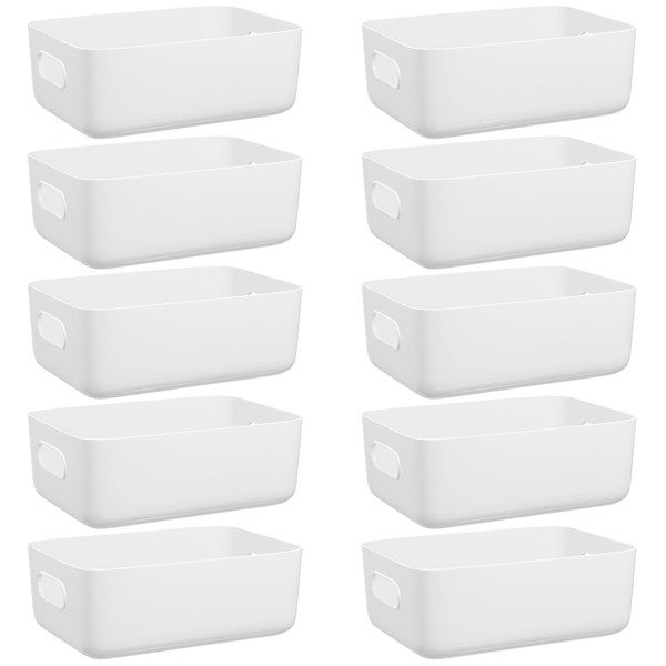 W&H 10 PCS White Plastic Storage Boxes with Handle, Small Baskets for Storage, Plastic Storage Baskets for Shelves, Cupboard Storage Baskets for Bathroom, Drawer, Kitchen Organizer - 8.2×5.5×2.7 Inch